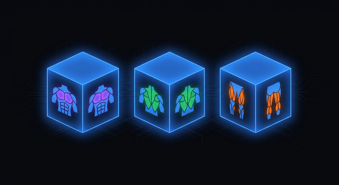 Iridium's AI adapts to your schedule automatically. Tell it you have three days to train, and it generates workouts that hit every muscle group optimally—no manual planning required.